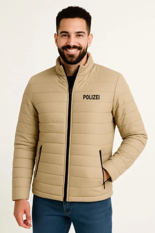 Erkek Mikro Su İtici Kapitone Baskılı Astarlı Fermuarlı Bomber Mont - Bej