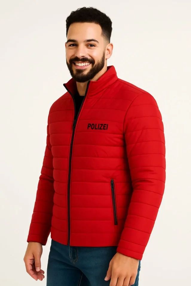 Erkek Mikro Su İtici Kapitone Baskılı Astarlı Fermuarlı Bomber Mont - Kırmızı