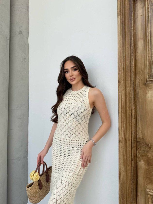 Kadın Kolsuz Kuş Gözü Teday Full Transparan Maxi Boy Elbise