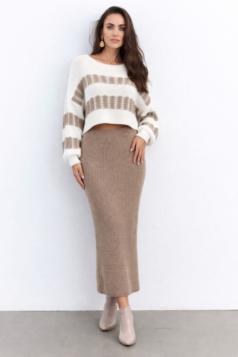 Kadın Uzun Kollu Kayık Yakalı Salaş Triko Bluz Ve Etek Ikili Takım
