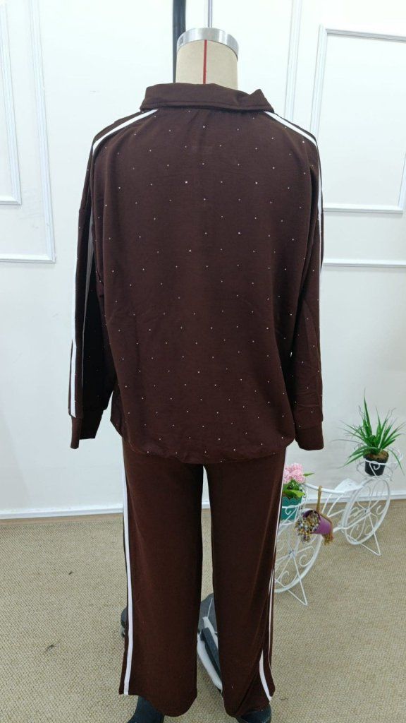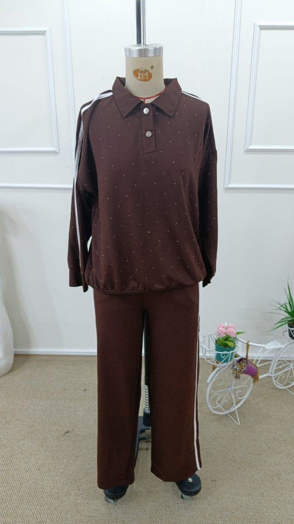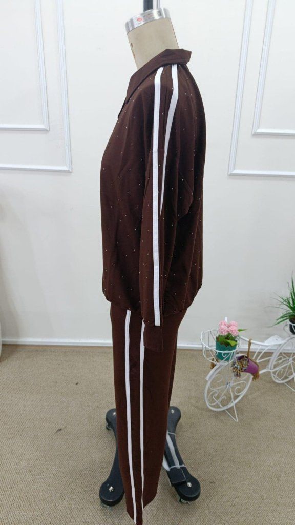 Kadın Uzun Kollu Yakalı şerit Detaylı Viskon Iki Iplik Bluz Ve Pantolon Ikili Takım