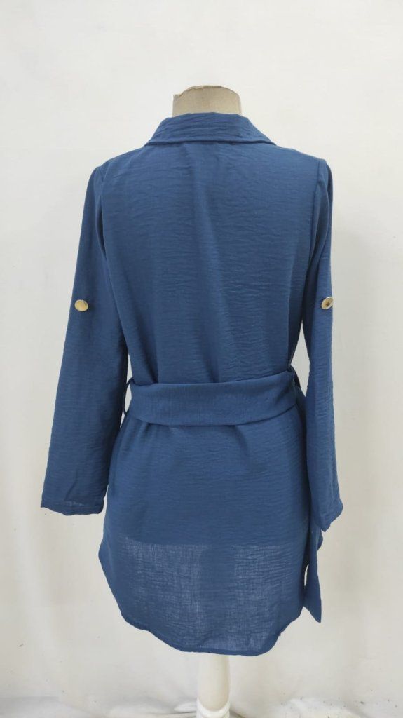 Kadın Uzun Kollu Yakalı önden Düğmeli Beli Kuşaklı Mini Ithal Keten Elbise