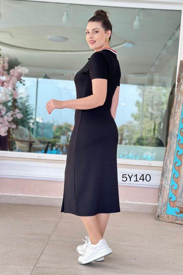 Kadın Yaka Ribanalı Çift Yırtmaçlı Elbise