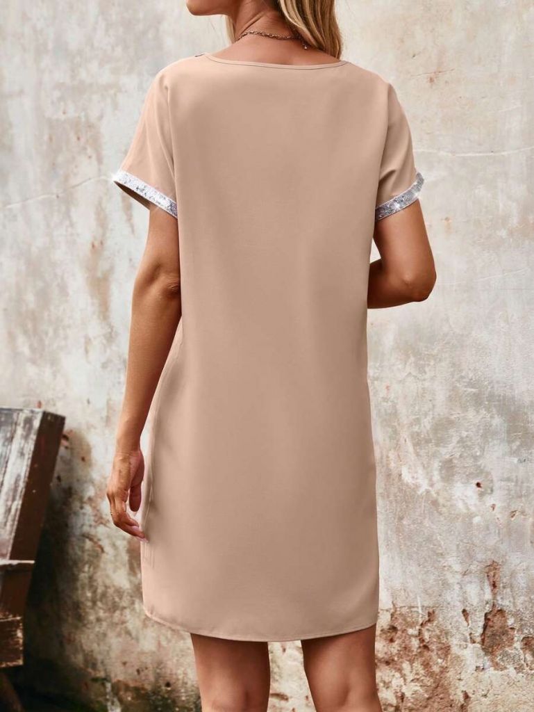 Kadın Yaka Ve Kol Pul Payet şeritli Ithal Krep Elbise