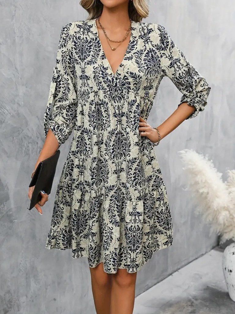 Kadın Uzun Kollu V Yakalı Fırfırlı Mini Süprem Elbise