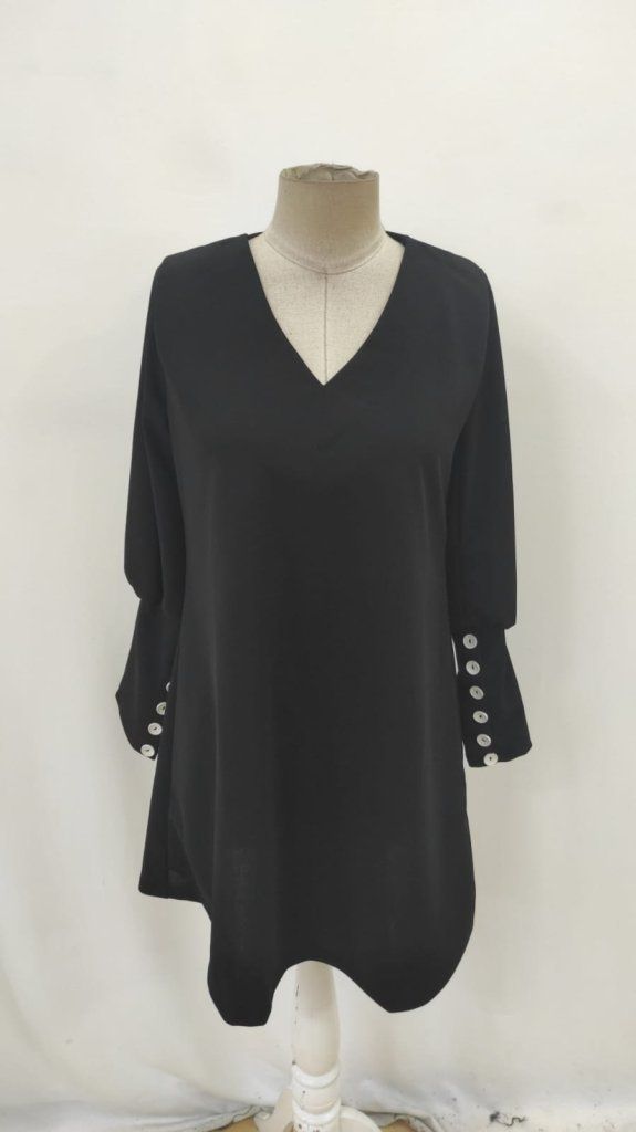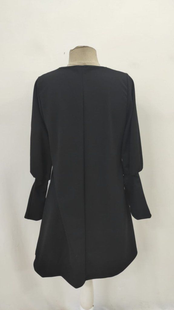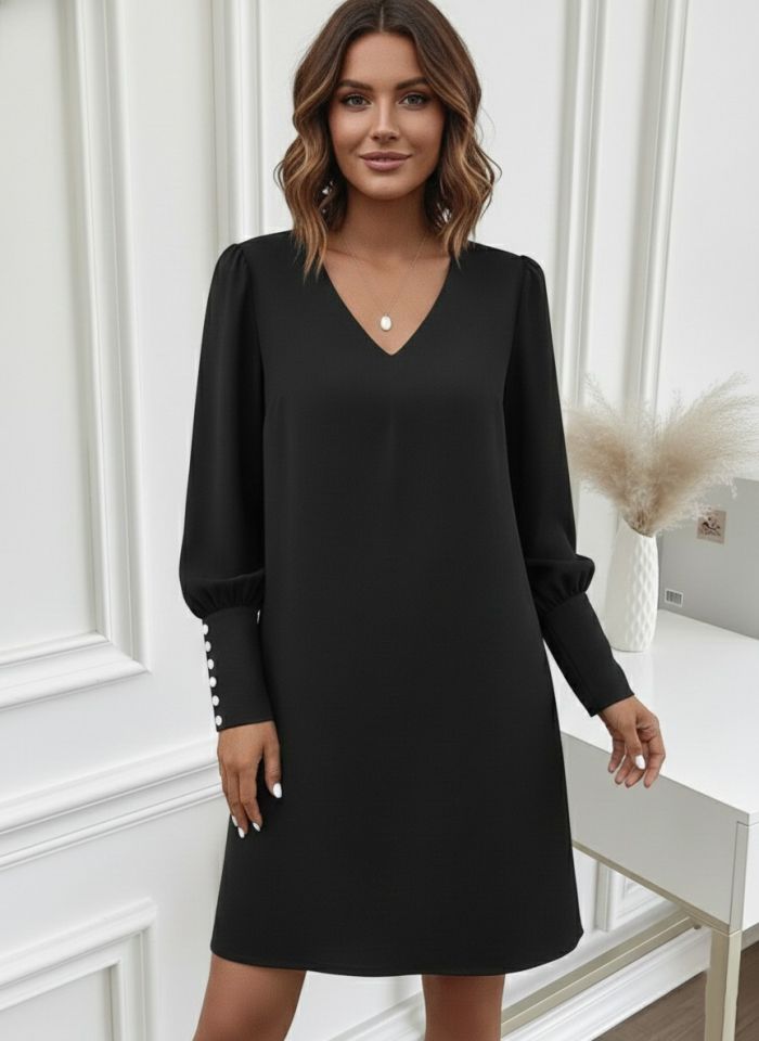 Kadın Uzun Kollu V Yakalı Kısa Ithal Krep Elbise