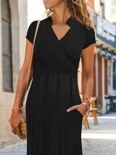 Kadın Kısa Kollu Hakim V Yaka Viskon Elbise