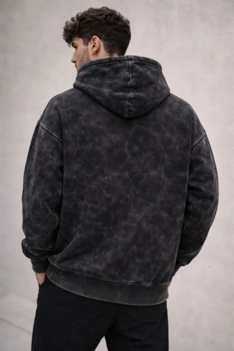 Erkek Yağ Yıkamalı Kapşonlu Double Oversize Üç İplik Sweatshirt