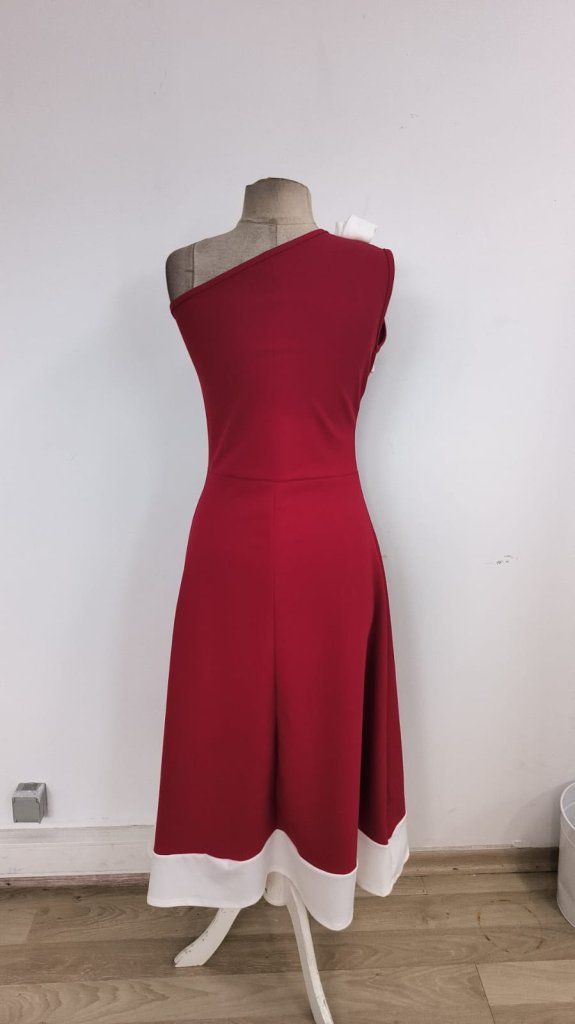 Kadın Tek Omuzu Açık Omuzlardan Kurdela Detaylı çift Renkli Ithal Krep Elbise