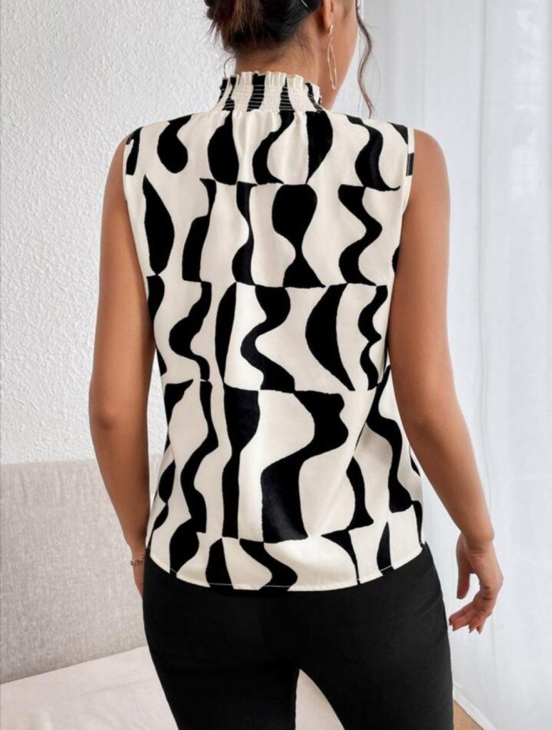 Kadın Kolsuz Balıkçı Yaka Desenli Süprem Bluz