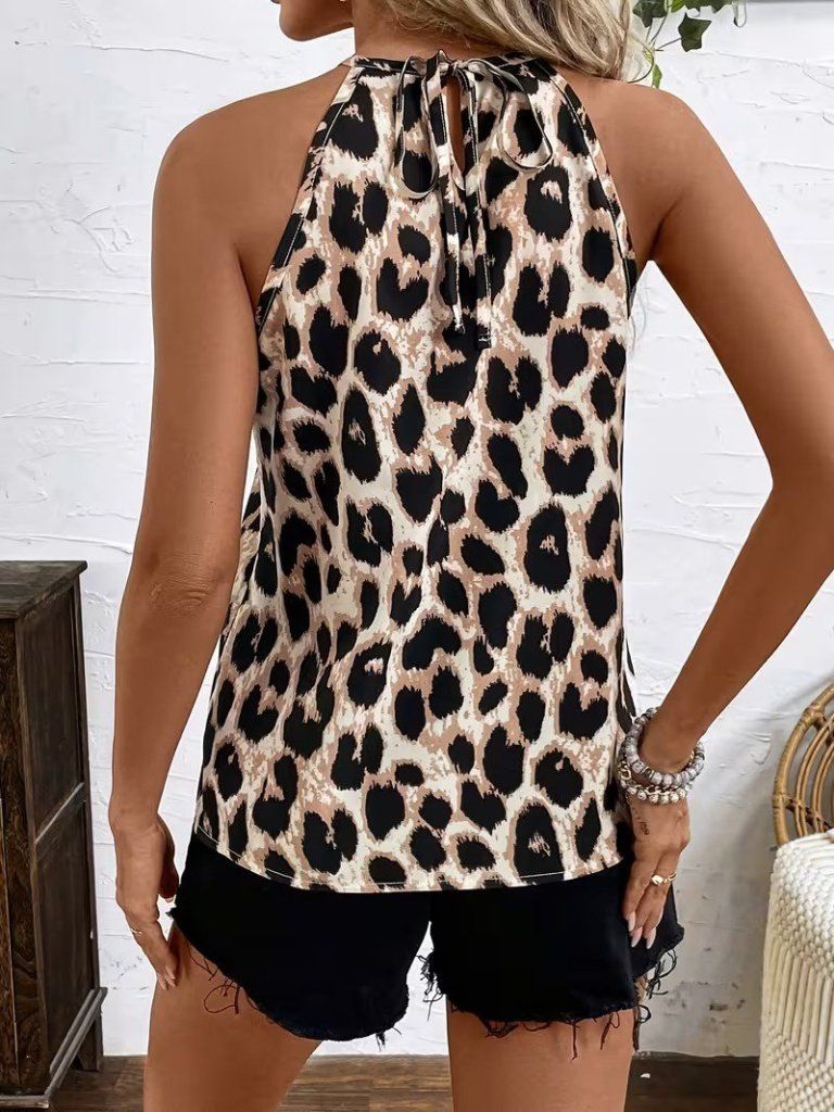 Kadın Uzun Kollu Boyundan Halka Detaylı Leopar Süprem Bluz