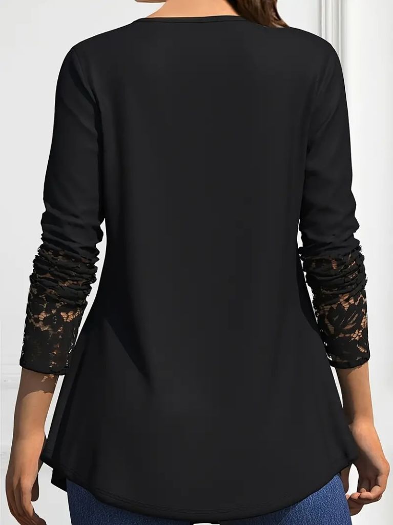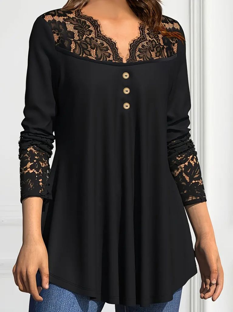 Kadın Uzun Kollu Dantel Detaylı Düğmeli Viskon Bluz