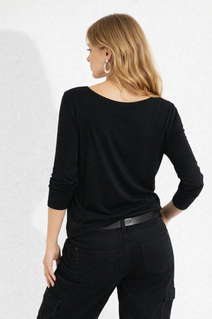 Kadın Uzun Kollu Yuvarlak Yakalı Viskon Bluz