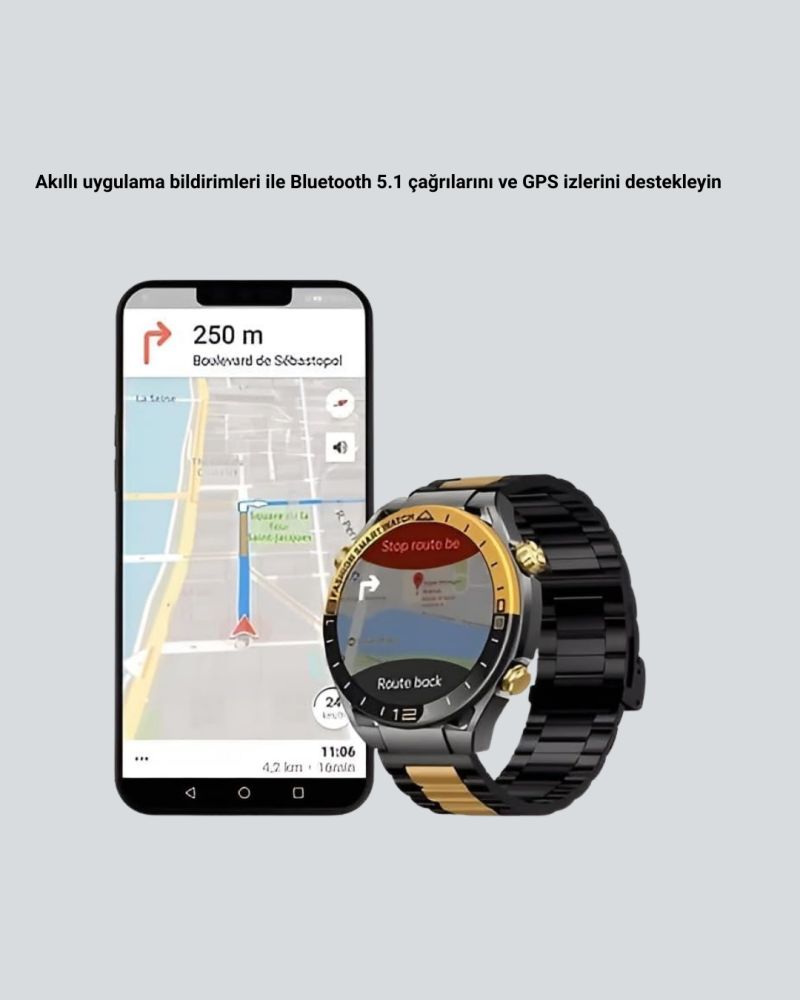 Bluetooth 5.1 teknolojisi sayesinde telefon ile daha kararlı ve güçlü bir bağlantı sağlar. Gelen çağrılar, mesaj uyarıları ve uygulama bildirimleri saat üzerinden kolayca görüntülenebilir. Ayrıca GPS ile uyumlu yapısı, spor aktivitelerinde rota takibi ve mesafe ölçümü yapmak isteyen kullanıcılar için büyük kolaylık sağlar.