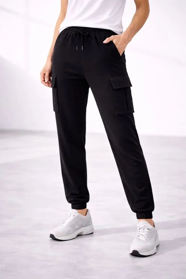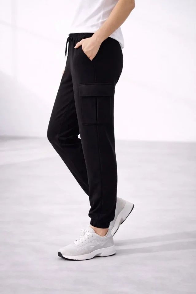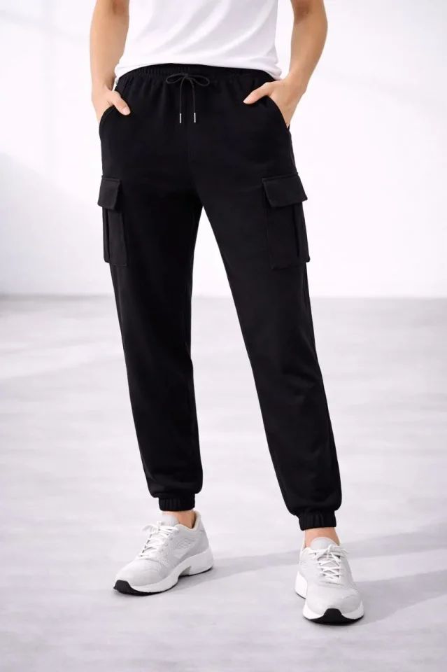 Jogger Eşofman Altı Rahat Kalıp, Kargo Cepli, Lastikli Paça, Günlük Spor Pantolon - Siyah