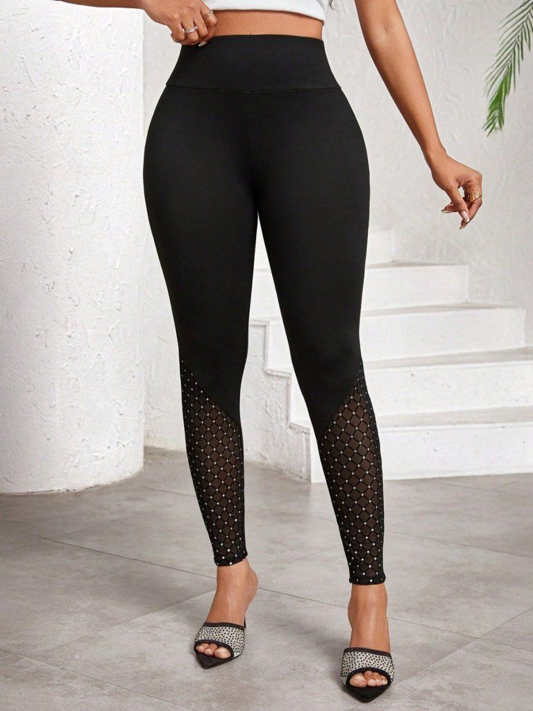 Kadın Yüksek Bel ışıltılı Tül Geometrik Detaylı Dalgıç Tayt