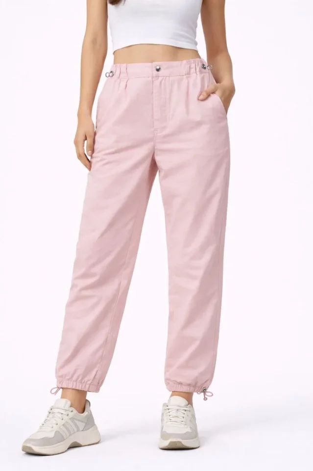Paraşüt Kumaş Pantolon Bel Ve Paça Ayarlanabilir Lastikli Spor Pantolon - Toz Pembe