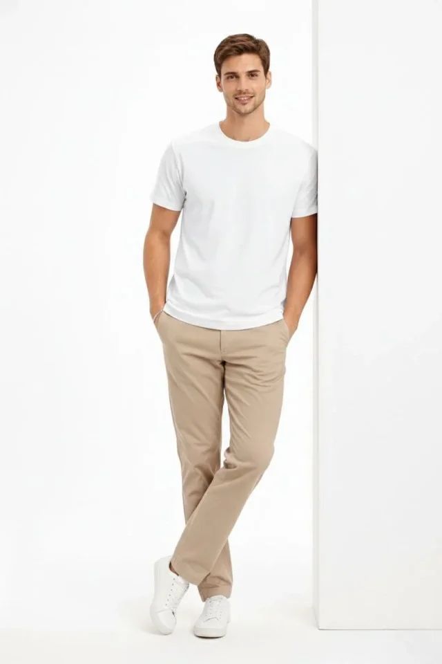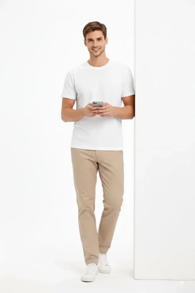 Erkek Bisiklet Yaka Tişört Regular Kalıp Basic Pamuklu Günlük Kullanım T-shirt - Beyaz