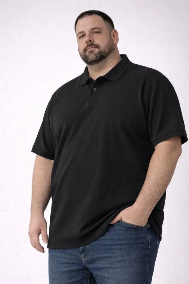 Erkek Pike Kumaş Düğmeli Yaka Battal Büyük Beden Günlük Kısa Kol Tişört T-shirt - Siyah