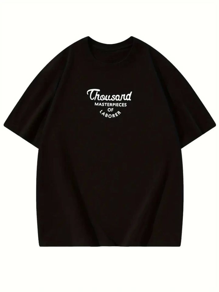 Thousand Baskılı Oversize Bisiklet Yaka T-shirt - Siyah