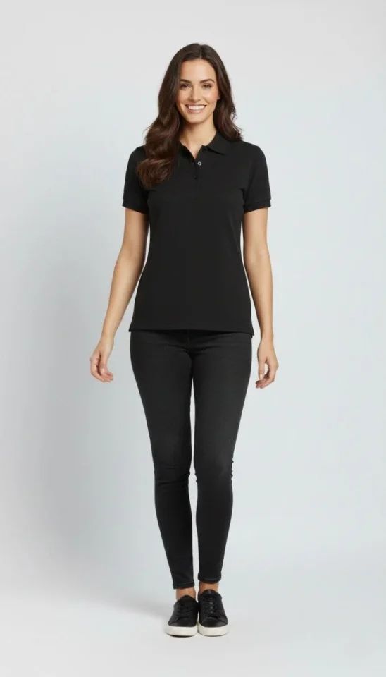 Pike Kumaş Düğmeli Yaka Regular Rahat Günlük Kısa Kol Tişört T-shirt - Siyah