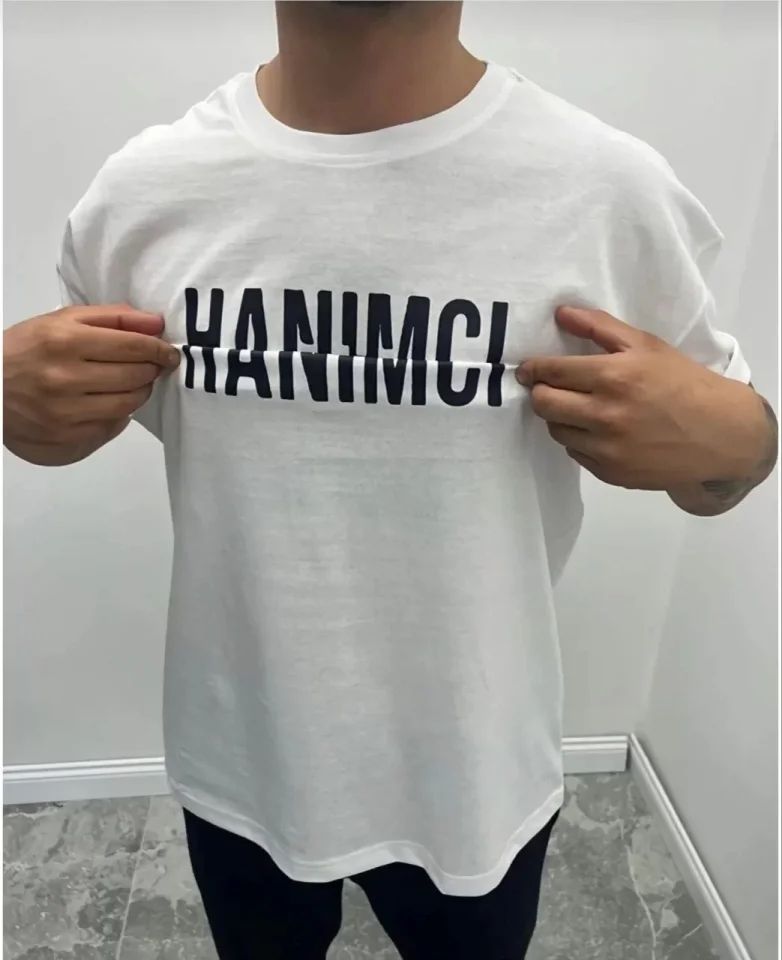 Unisex Bisiklet Yaka Katlanan Baskılı T-Shirt - Beyaz