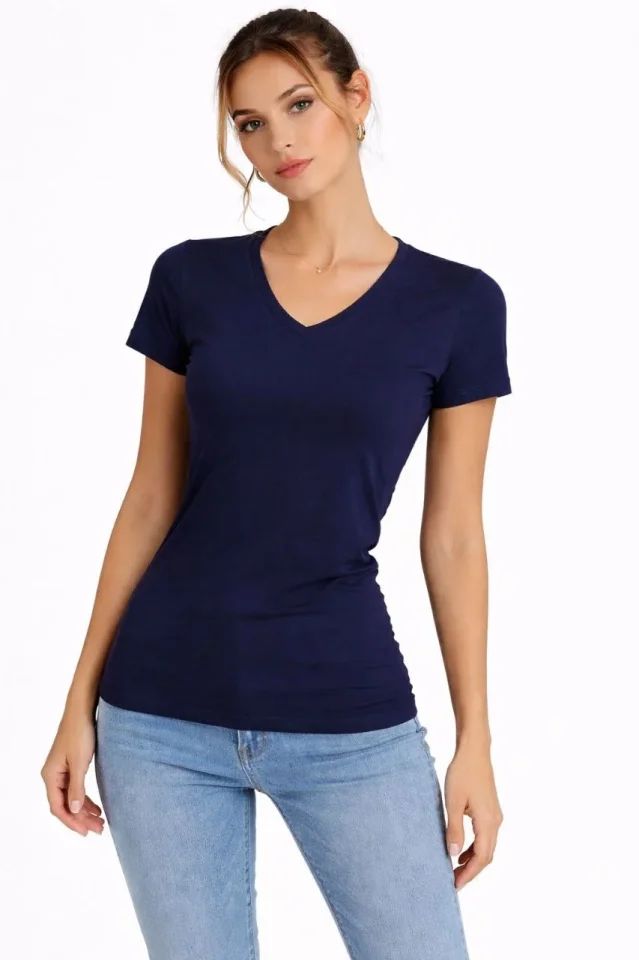 3lü V Yaka Tişört – Kısa Kollu Yazlık Slim Fit Body - Toz Pembe, Lacivert, Hardal