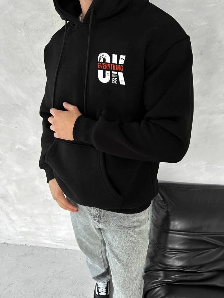 Oversize Üç İplik Kapşonlu SweatShirt - Siyah