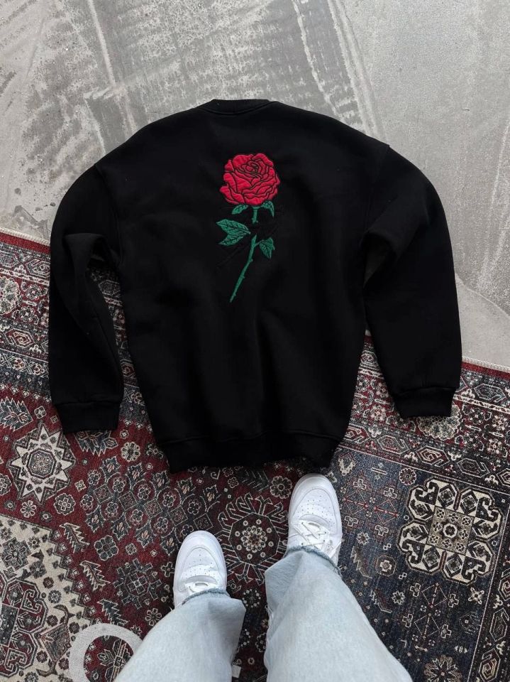 Unisex Bisiklet Yaka Ön Ve Arka Baskılı SweatShirt - Siyah