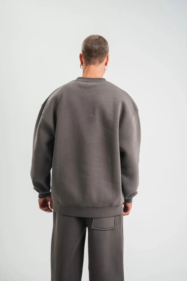 Uzun Kol Bisiklet Yaka Basic SweatShirt - Füme