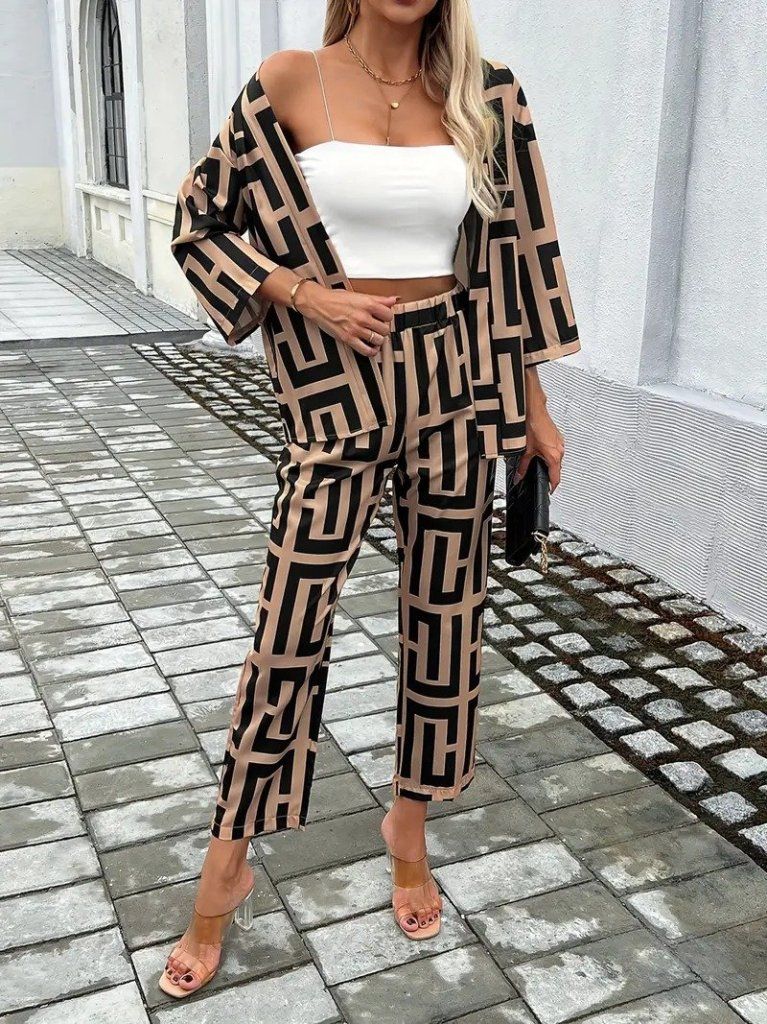 Kadın Uzun Kollu önü Açık Desenli Iki Iplik Ceket Ve Pantolon Ikili Takım