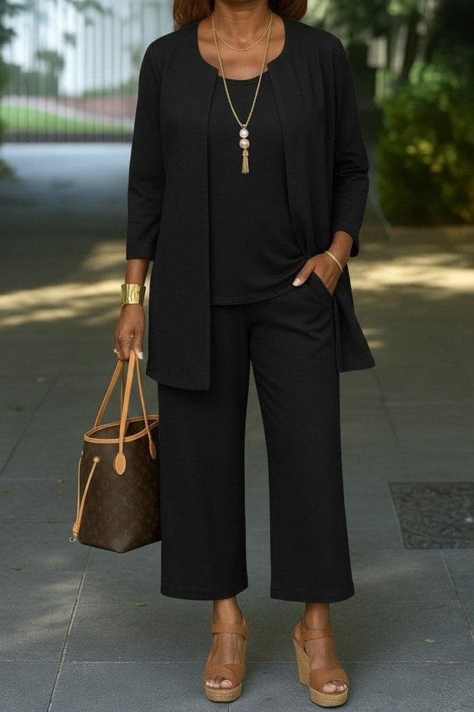 Kadın Uzun Kollu önü Açık Modal Ceket Kolsuz Viskon Iki Iplik Bluz Ve Pantolon üçlü Takım