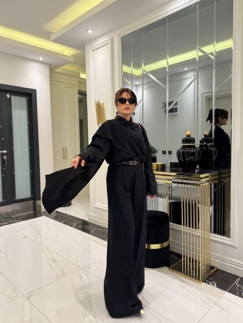 Kadın Uzun Kollu şal Detaylı Bluz Ve Pantolon Kemer Dahil Ikili Takım