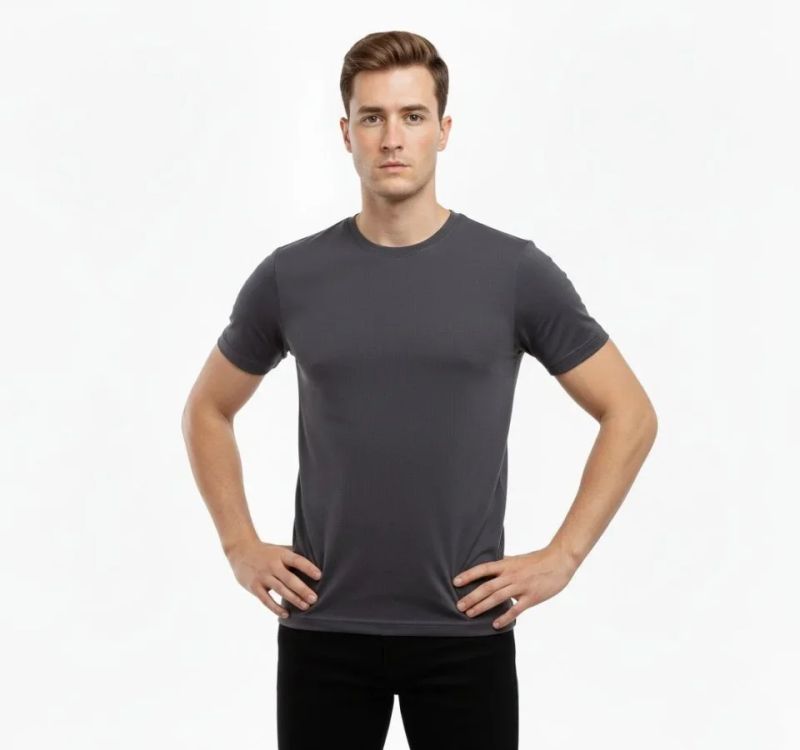 Erkek T-Shirt Bisiklet Yaka Slim Fit Dar Kesim Likralı Tişört Günlük Basic Body - Füme