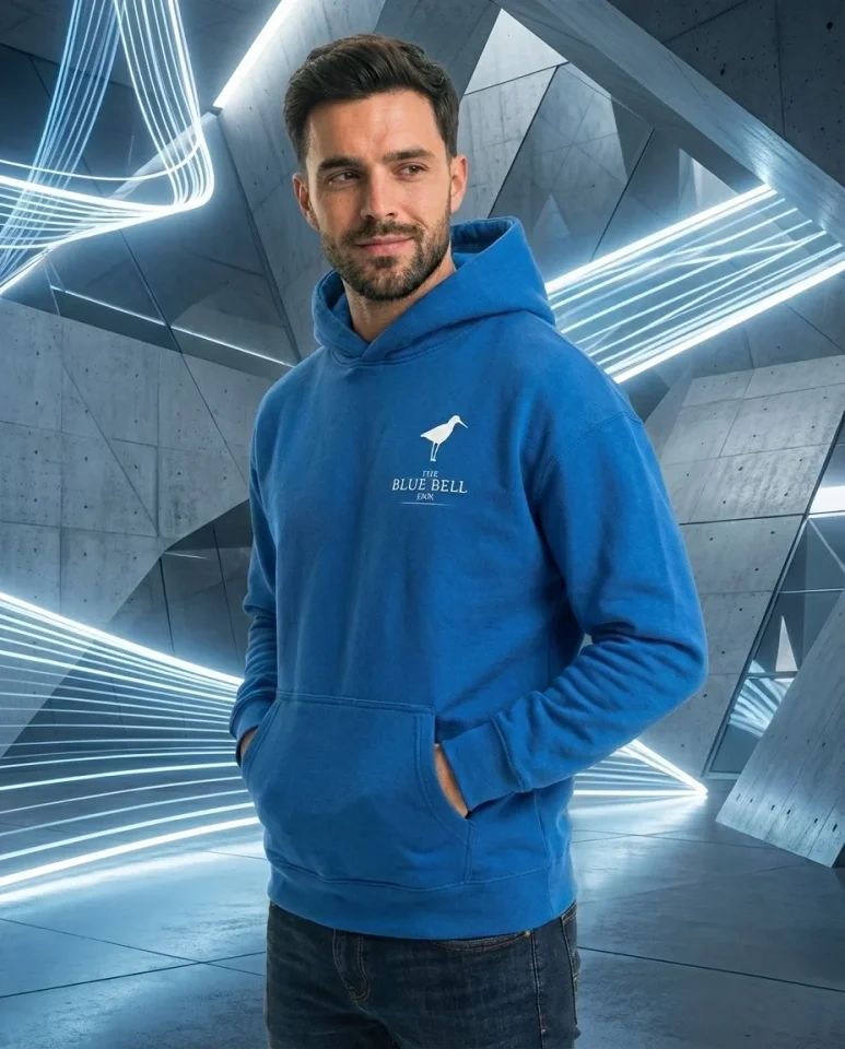 Erkek Kapüşonlu Double Oversize Üç İplik Pamuklu Deniz Yelken Baskılı Kanguru - Saks Mavisi