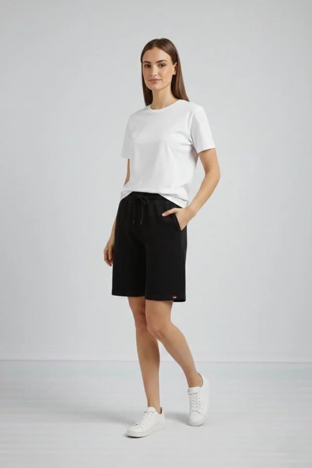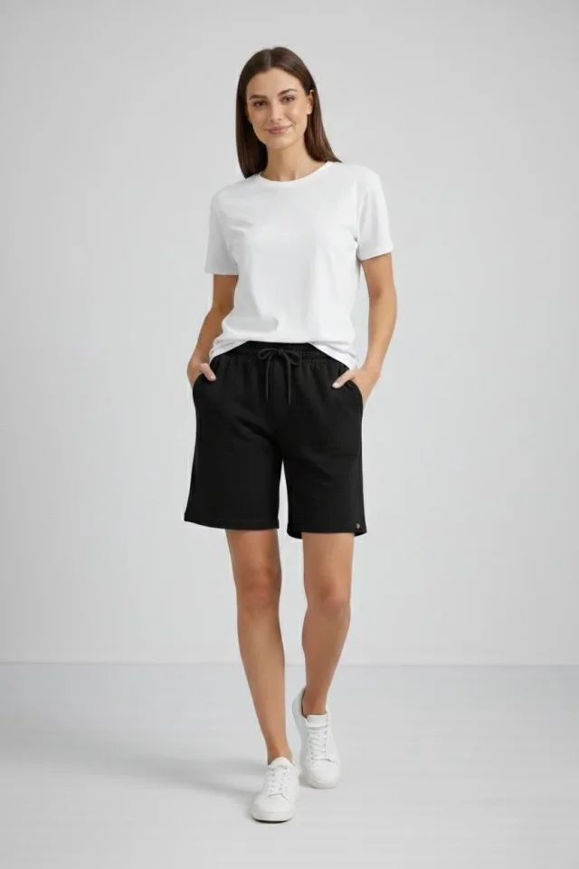 Dokuma Otoban Şort Beli Lastikli Bağcıklı, Cepli, Rahat Kesim Günlük Yazlık Şort - Siyah