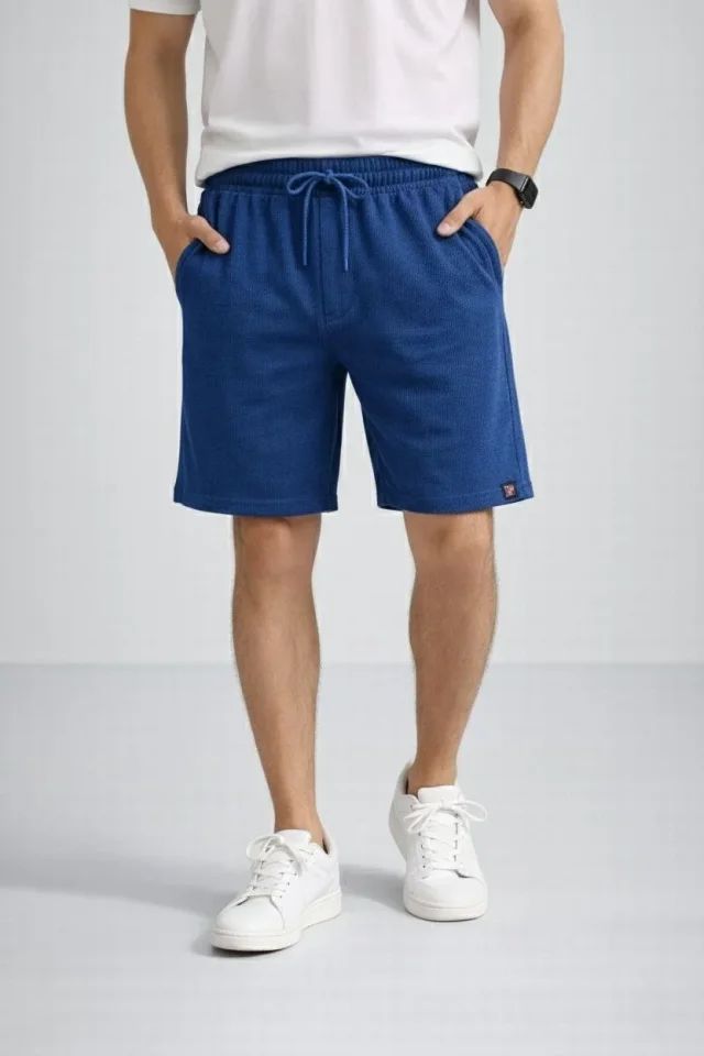 Erkek Otoban Dokuma Şort Beli Lastikli Bağcıklı, Cepli, Rahat Kesim Günlük Yazlık Şort - İndigo