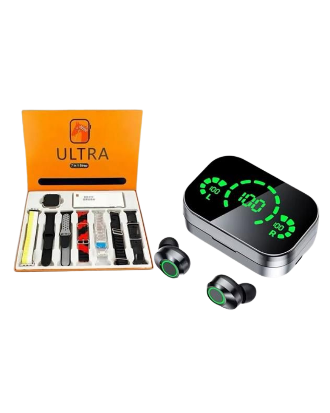 7 Kordonlu Akıllı Saat Ve Aynalı Bluetooth Kulaklık Powerbank Dijital Göstergeli