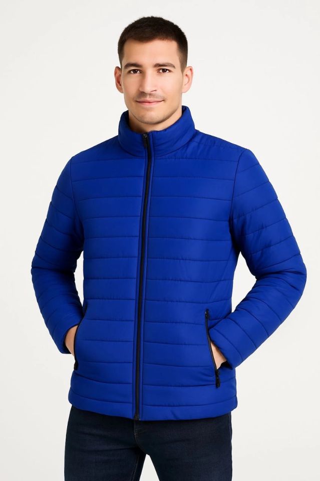 Erkek Bomber Mont Ceket – Su İtici Kumaş, Kapitone Astarlı, Fermuarlı, Kışlık - Saks Mavisi