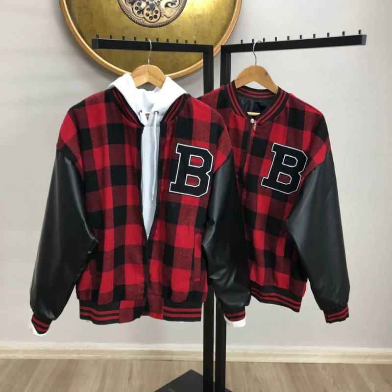 Erkek Pötikare Desen Nakışlı Kolej Ceket - Kırmızı
