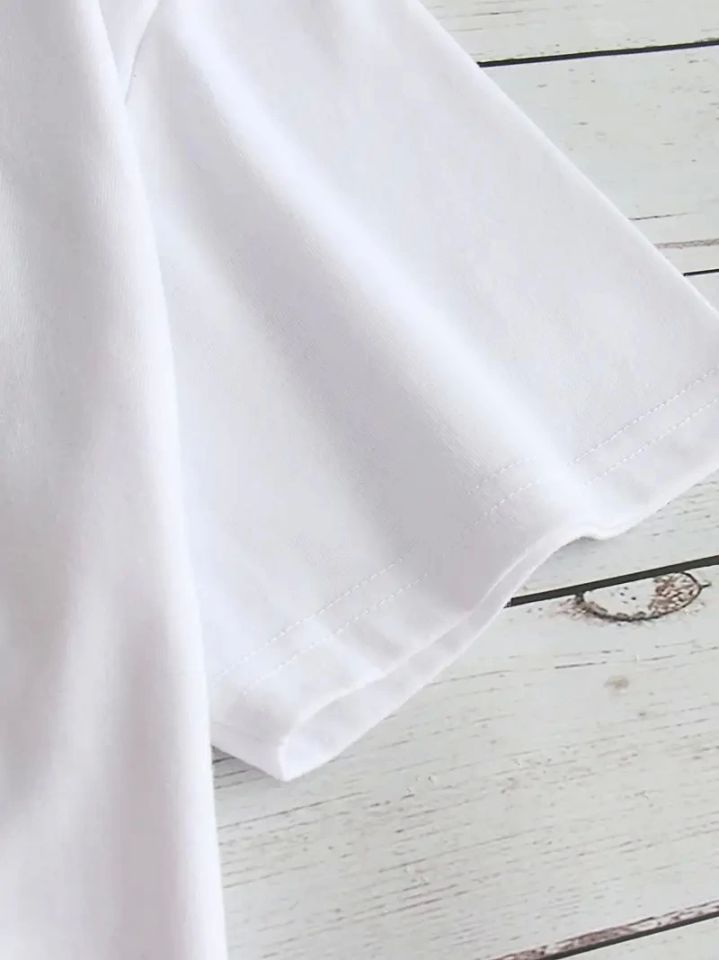 Baskılı Oversize Bisiklet Yaka T-shirt - Beyaz