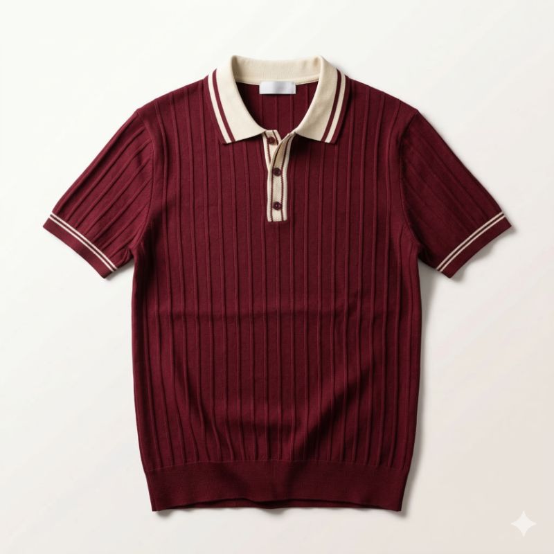 Erkek Düğme Yakalı Kontrast Yaka Triko Tişört
