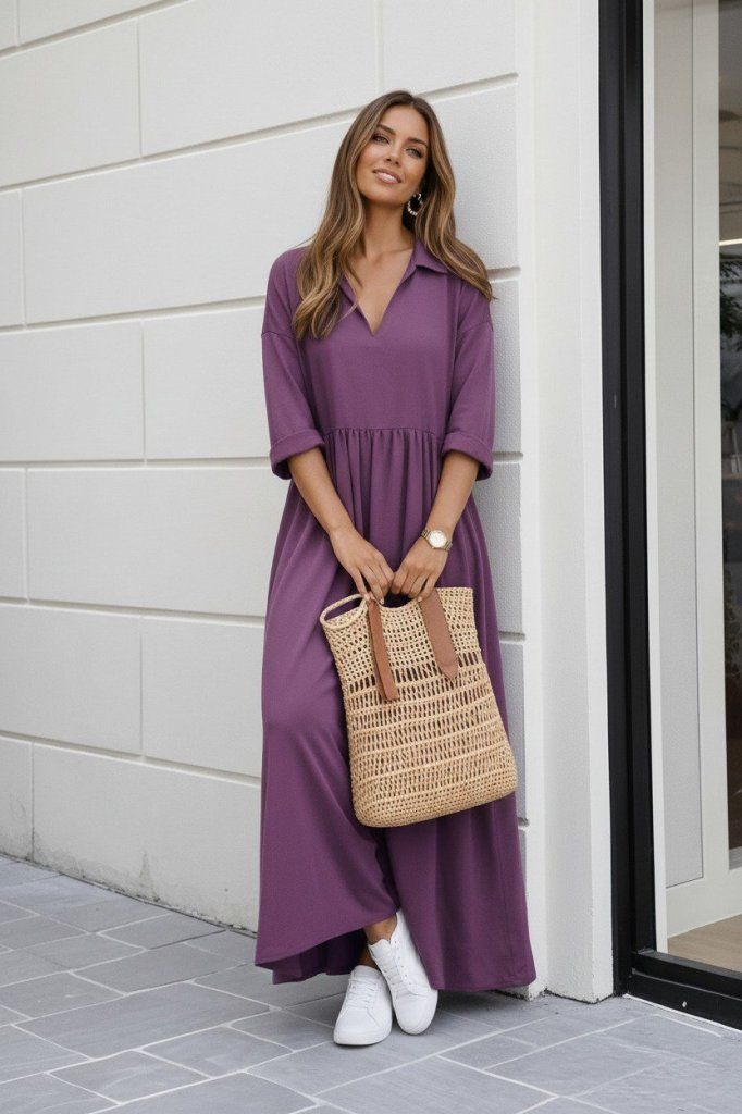 Kadın Truvakar Kollu V Yakalı Yırtmaçlı Uzun Aerobin Elbise