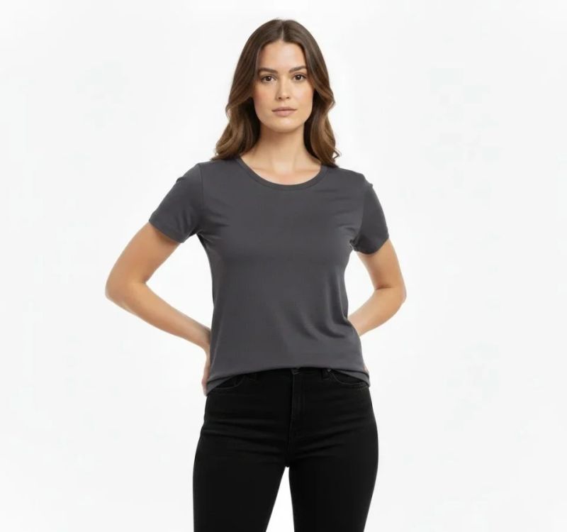 T-Shirt Bisiklet Yaka Slim Fit Likralı Tişört Günlük Basic Body - Füme