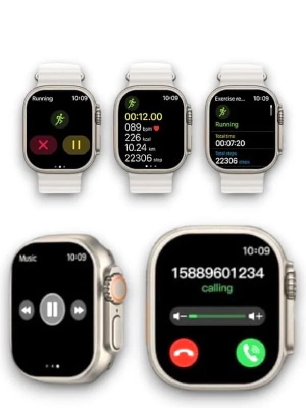 Teknolojiyi bileğinizde taşıyın. T800 Ultra, parlak ve net tam ekran tasarımıyla hem estetik bir görünüm hem de üstün kullanım kolaylığı sunuyor. Bluetooth çağrı özelliği sayesinde telefonunuzu cebinizden çıkarmadan aramalarınızı yönetmenize olanak tanıyan bu model, ergonomik tasarımıyla gün boyu konfor sağlar. Temel sağlık takibi özelliklerinden mesaj bildirimlerine kadar ihtiyacınız olan her şeyi tek bir ekranda toplayan bu akıllı saat, hem günlük yaşamda hem de spor aktivitelerinde en iyi yardımcınız olmaya aday.