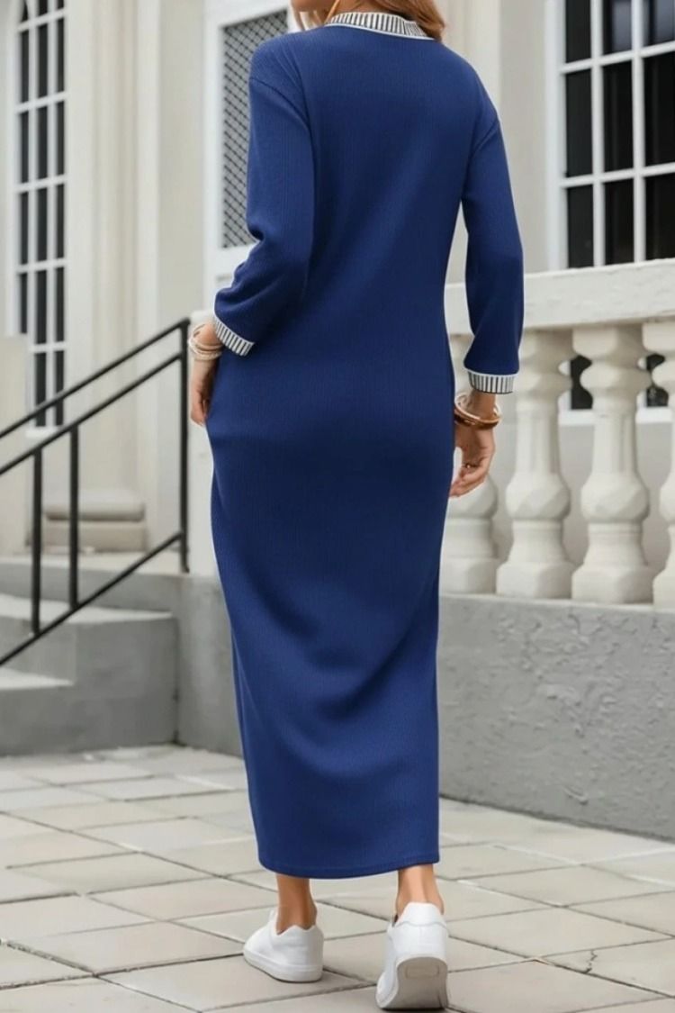 Kadın Uzun Kollu V Yakalı Yanlardan Yırtmaçlı Uzun Viskon İki İplik Elbise