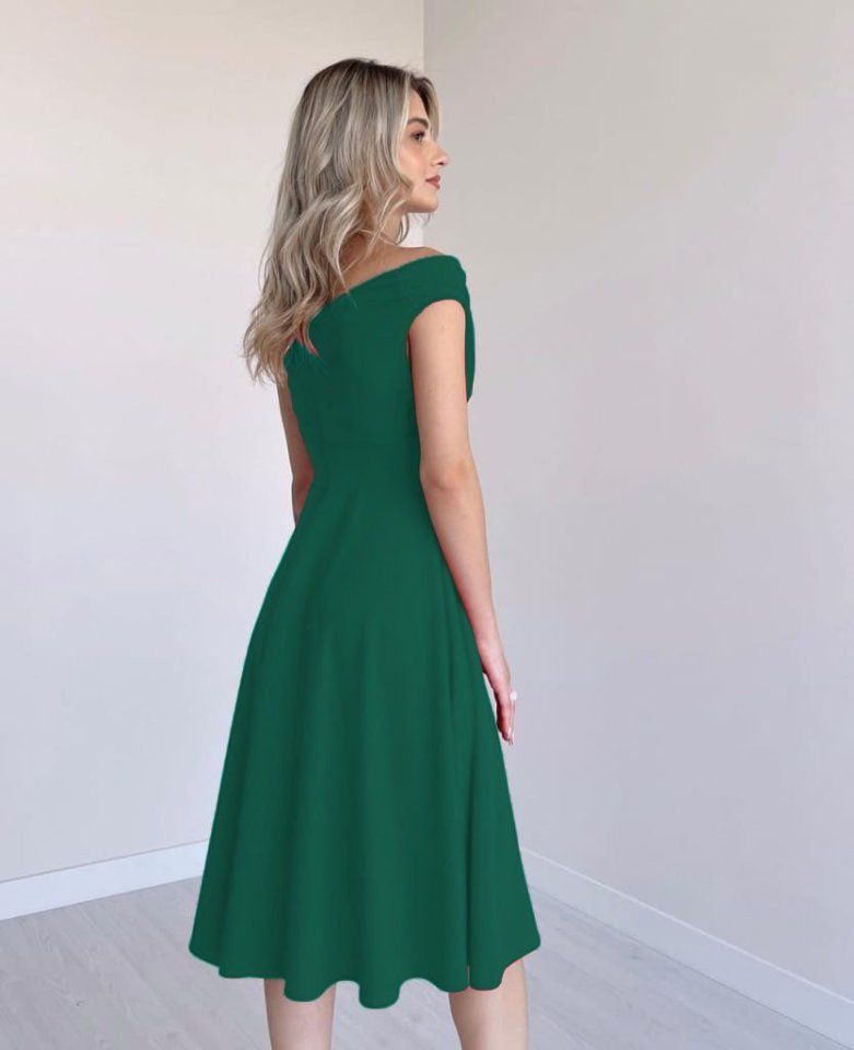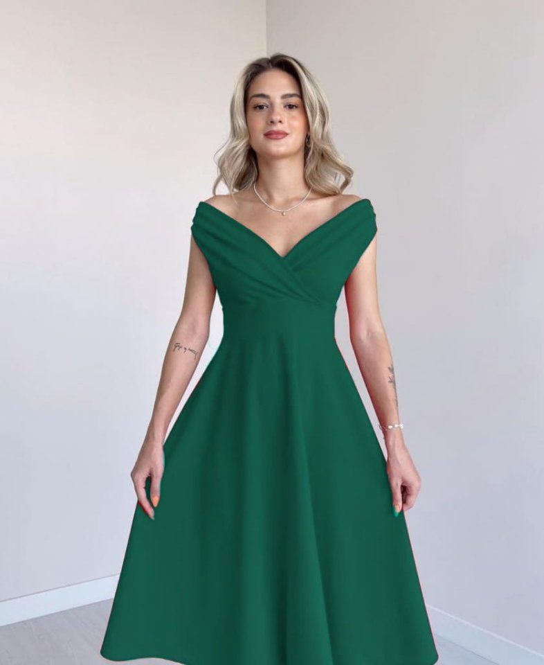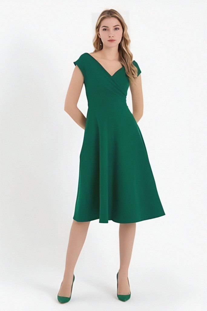 Kadın Kısa Kollu Kruvaze Yaka Eteği Volanlı Krep Elbise