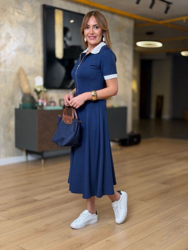 Kadın Kısa Kollu Ribana Ve Fermuar Detay Midi Boy Elbise