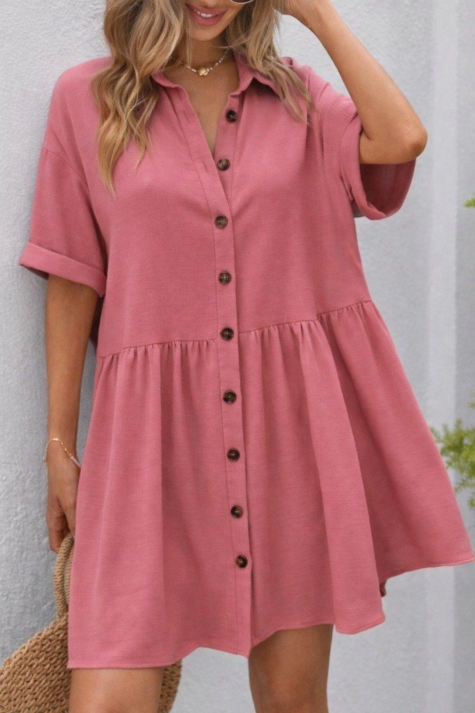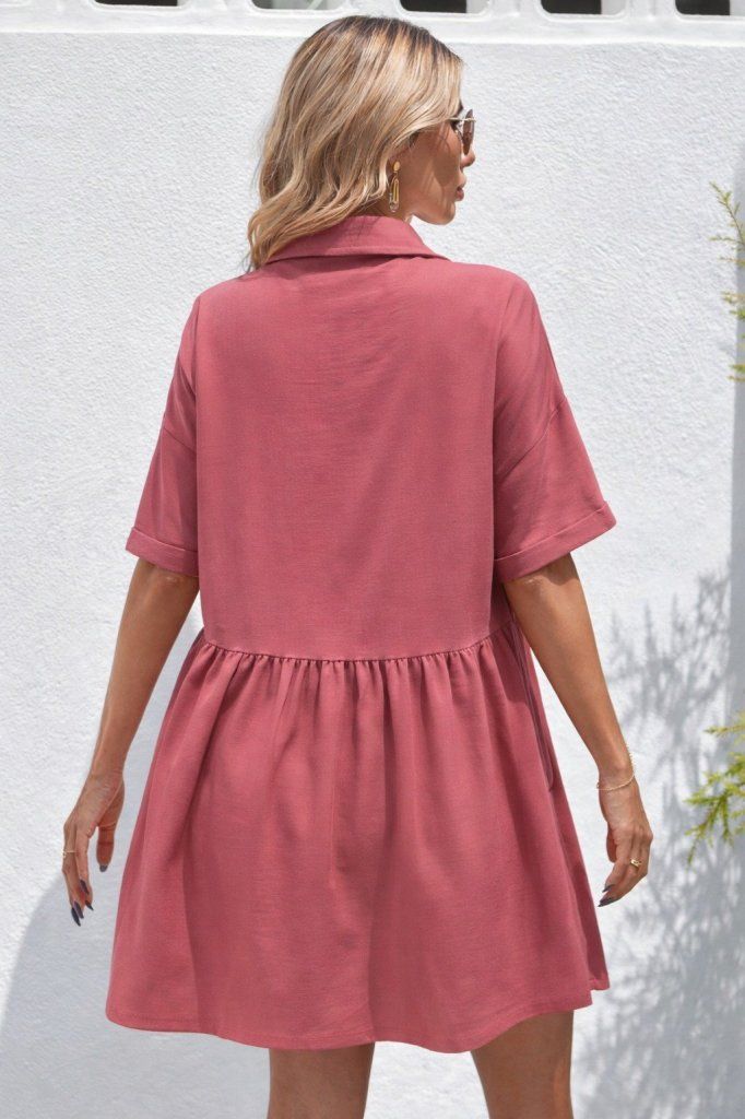 Kadın Kısa Kollu Yakalı önden Düğmeli Kısa Bürümcük Elbise