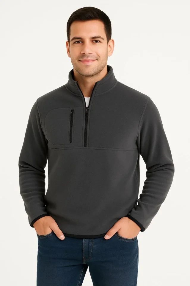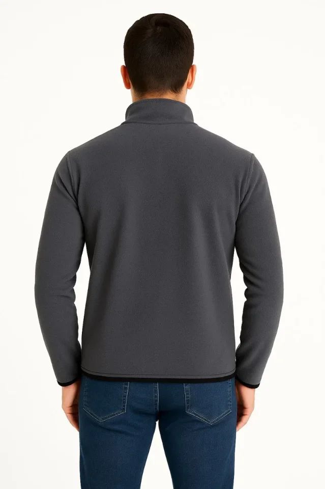Erkek Polar Kazak Dik Yaka Yarım Fermuarlı Fermuarlı Göğüs Cepli Siyah Biyeli - Füme